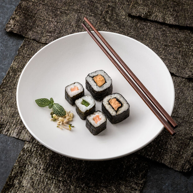 Impress your guests with sophisticated tableware design. Natural, original and with a special feel: this is Manufacture Rock. The artisanal style in the form of matte slate-looking porcelain makes the collection truly unique. Combine it with the hand-painted pieces in the Manufacture sister collection to bring warmth to your table. The practical white bowl from Manufacture Rock is perfect for serving salads, rice dishes or side dishes every day in a unique style.