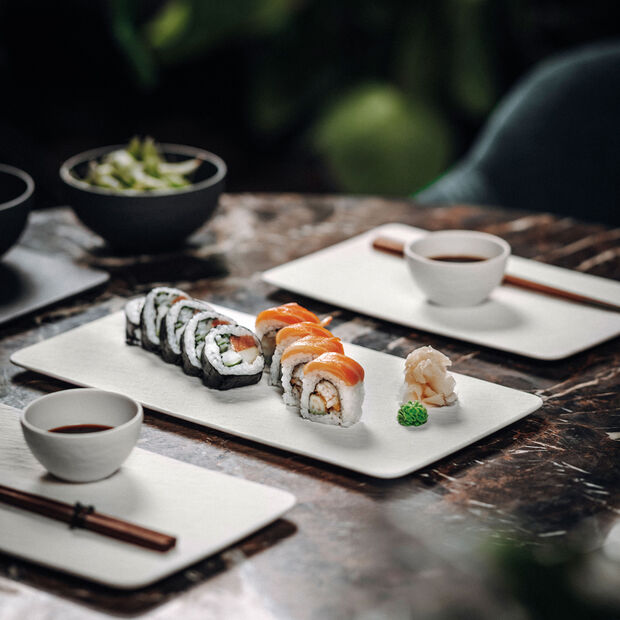 Manufacture Rock Blanc is something very special: an innovative use of materials, matt-structured porcelain surfaces and the expressive white give the iconic on-trend range its slate-like look and exceptional feel. Can be combined with the entire Manufacture range for an exciting look. Why do plates always have to be round? Manufacture Rock Blanc breaks the mould in many ways – this unusual plate is just one example of how you can enhance any meal with extraordinary design. Treat yourself to distinctive design.